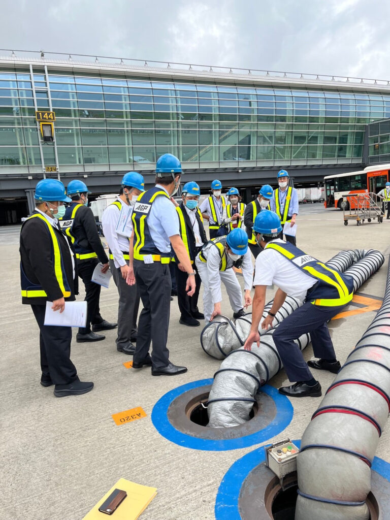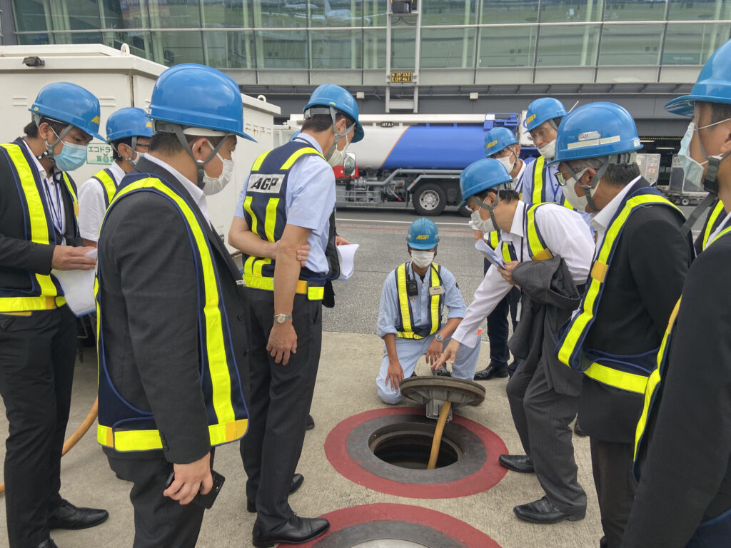 羽田空港にて、当社が具備する、日本独自の空港技術である「埋設型GPU」の視察をいただき、同技術により年間約20万4000トンのCO2排出量削減に貢献している旨をご説明させていただき、タイ王国工業省の皆様にも大変興味を持っていただきました。
