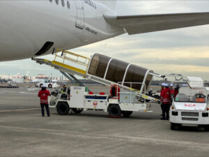 会議室での概要説明に加え、実際のスポット駐機中の機材において搭降載作業が行われ、多くのメディア関係者に新機材の性能をご覧いただく貴重な機会となりました。弊社の広報担当も同席し、最新機材の導入による業務効率化や環境負荷低減への貢献について、各関係者と意見交換をさせていただきました。