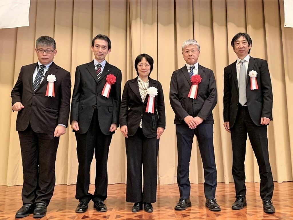 ※左から 東京航空局 空港部長 谷川 晴一様、当社 溝渕 保雄、東京航空局長 藤田 礼子様、当社 高橋 靖幸、東京航空局次長 日巻 博文様