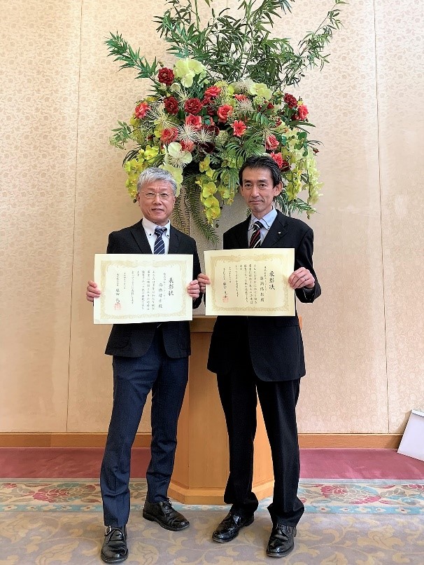 10月3日に東京航空局において、「東京航空局表彰式」が開催されました。航空関連事業に携わり航空機支援業務に長年従事する社員で民間航空の振興、発展のため貢献した者(航空局部外功労者)として、当社部長職社員2名(高橋靖幸、溝渕保雄)が、東京航空局長より表彰状をいただきました。