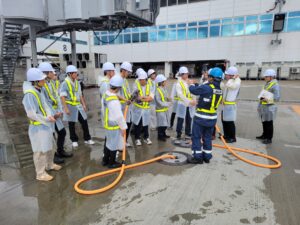 2024年6月22日、福岡国際空港株式会社様ならびに日本航空株式会社福岡空港支店様(JALスカイ九州)と連携し、崇城大学工学部宇宙航空システム工学科の学生(32名)向けの職場見学会を当社福岡空港支店で開催しました。