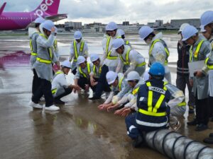2024年6月22日、福岡国際空港株式会社様ならびに日本航空株式会社福岡空港支店様(JALスカイ九州)と連携し、崇城大学工学部宇宙航空システム工学科の学生(32名)向けの職場見学会を当社福岡空港支店で開催しました。