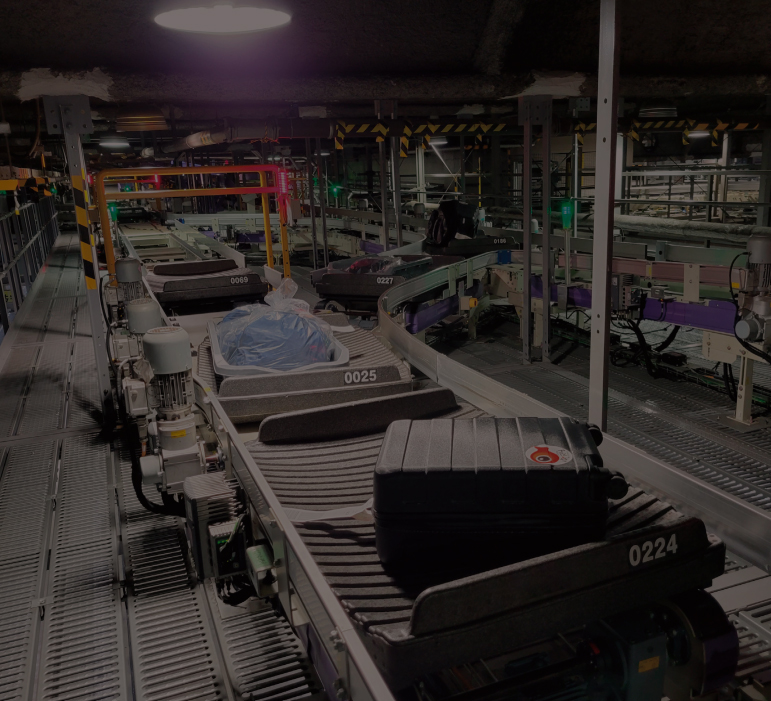 “到着後、手荷物を受け取る”このごく当たり前のことを支えているのは、AGPの高品質な技術とシステム管理。旅客搭乗橋設備、手荷物搬送設備など空港内の多くの設備を技術力でメンテナンスしています。また、手荷物搬送設備では、運用状態を的確に把握し、省エネの環境にかかわる提案も行っています。